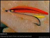 Tied by: Don Soar Originated by: Don Soar Hook: VMC B-17 #2 Thread: White Tail: Yellow hackle fibers Body: Yellow floss Rib: Black wire Belly: White...