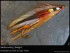 Tied by: Alan Grombacher Originated by: Alan Grombacher Hook: #2 Partidge Carrie Stevens CS15 Thread: White flat waxed nylon Tag: Silver flat tinsel...