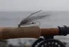 We continue our series of tube flies tied in the Scandinavian style. This fly is another subdued yellow, white and gray fly, well suited for bright light and clear water. It uses a mallard hackle to create a nice, closed shape.
