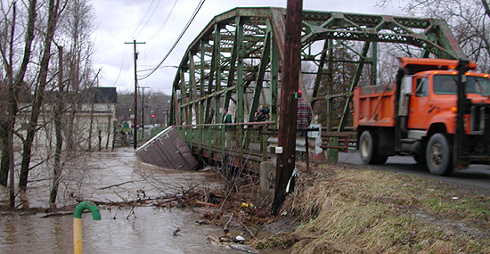 This is what things looked like last year on April 2nd. This was a storage shed from the nearby football field that got washed away in the floods and eventually lodged underneat this bridge. The water here is normally well below bridge level. I remember talking to an old timer who was out walking who said in the umpteen years he's lived in the area, he'd never seen the creeks rise so hight. They eventually declared a state of emergency for my county and most of the surrounding counties.