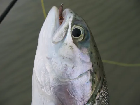 My good friend Nils, who joined me that day, proves that the fish were there. While I was just around a bend fishing, he caught a huge rainbow - probably weighing in at 10-12 lbs or 5-6 kilos and measuring a whopping 65 centimeters or some 25 inches. I only saw the picture but it must have been fun to land on a 5 wt!