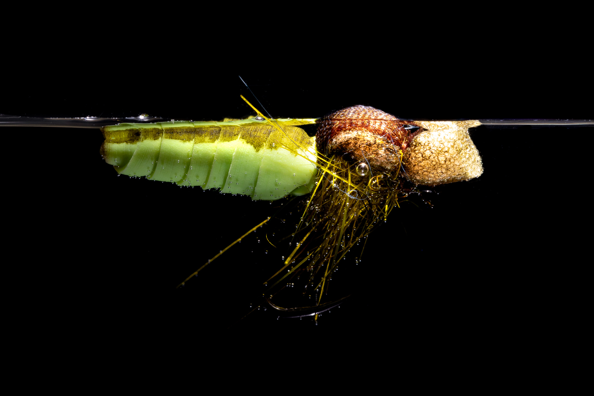 Detached body Virtual Nymph 3mm caddis green nymph skin, 2-3mm foam sheet, hollow braid and marker pen