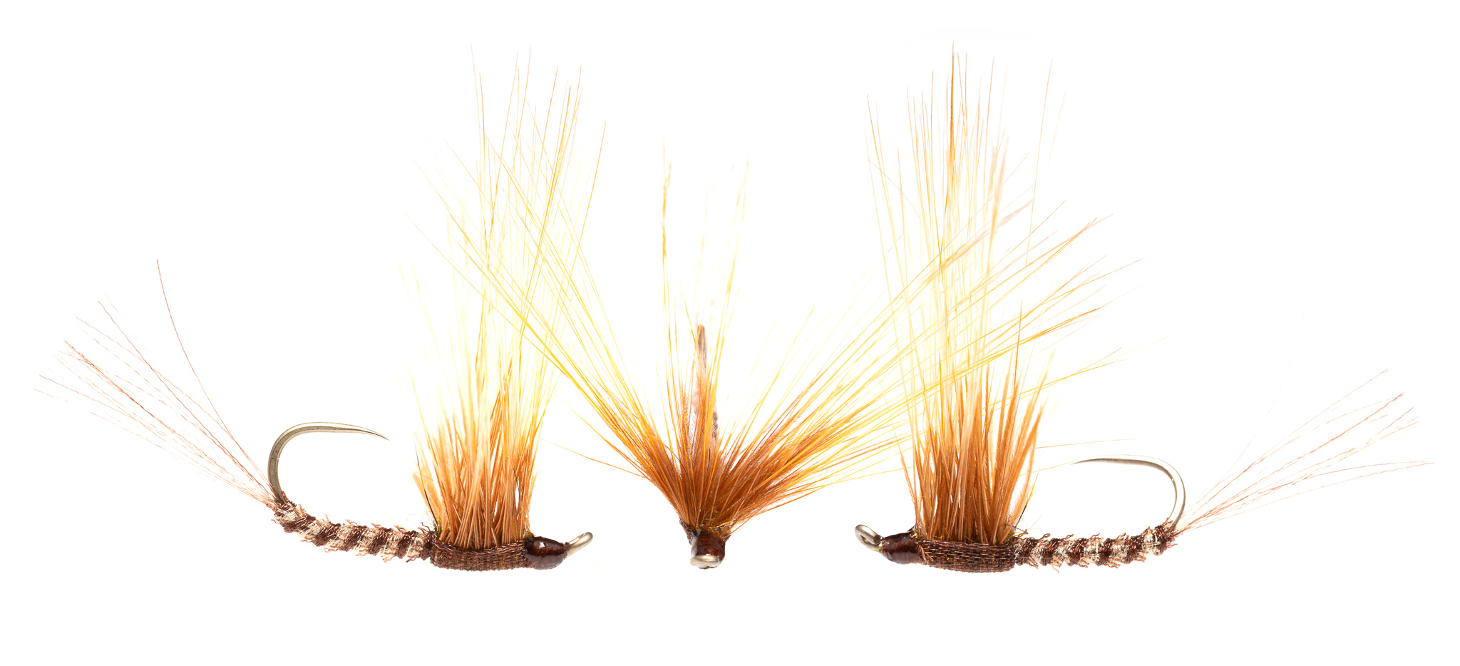 - Fold the fibres in half around the tying thread, tie down along the top of the shank to form the tails and trim to length.