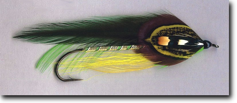 NOTES: I tied this one in honor of Saint Paddy's day. The common Ringneck Pheasant has some great feathers for many uses, from Streamers to Spey flies. I have a skin dyed yellow, which gives the fly a good look.