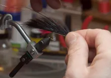When you tie down the zonker strip on the front of the fly, you often get a fairly large bump under the thread - and under the head or the front hackle. You can avoid this by leaving a little space in front of the wing, and finishing it with a small bunch of hair similar to that on the strip.