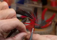 This fly is a bright and tasty looking bite of feathers and fur that can sometimes be the key to luring a big trout. It's a variation of a variation of the Bloody Butcher.