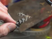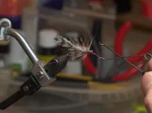 As you will see in the tying steps, the fly shown here is just tied with one hackle, while the original used two: a body hackle and a front hackle. The length and nature of modern hackles makes this unnecessary. You simply start the hackle in the front of the fly behind the eyes, and take a few extra turns with the larger part of the feather to form a front hackle before doing the body hackle.