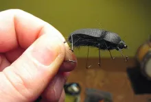 This neat little beetle’s body is made from extruded neoprene cord, which is widely available and a really useful tying material