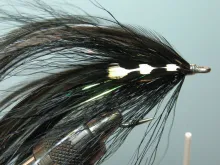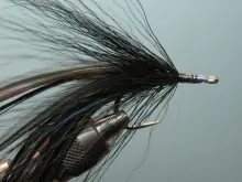 Another variation on large saltwater flies from the hands of Pete Gray. Mainly for striped bass, but useful for other specied too. This is the sinister version for fishing in darkness - or for dead drifting at O'dark thirty as Pete puts it.