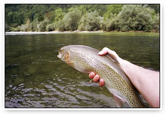 A really nice rainbow trout overlooking its home water the Traun just prior to its release