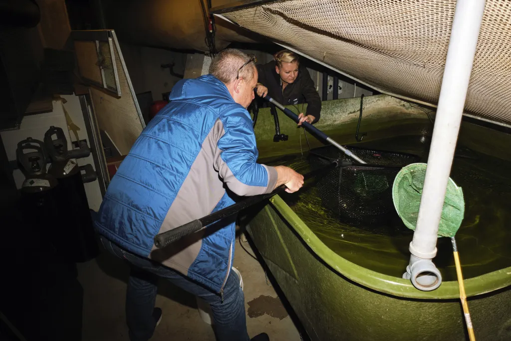Many of the fish have been kept in large tanks and are fetched from there just before they are shot