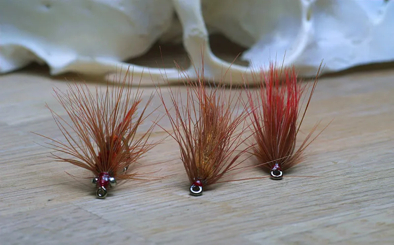 The three versions of the Omoe Brush seen from the front. The turned hackle versions become a bit more fuzzy