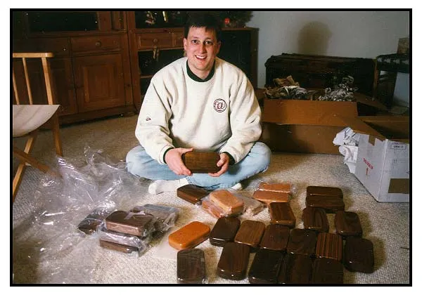 Steve assessing a bunch of fly boxes of his own making during one of Martin's visits in his home.
