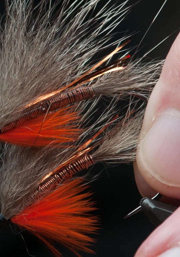 The bottom fly has a bare copper wire body, which will work nicely, but soon oxidize and be very exposed and probably break. The top one has been covered with LCR and is essentially indestructible