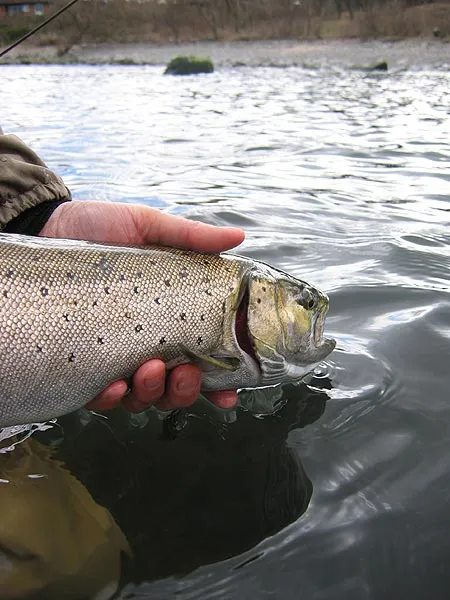 A Bornholm kelt about to regain its freedom. We release all colored and post spawn fish.