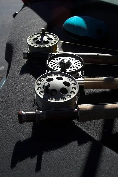 The reels in the rear window of the car - two Lamson's and a Leeda Rimfly.