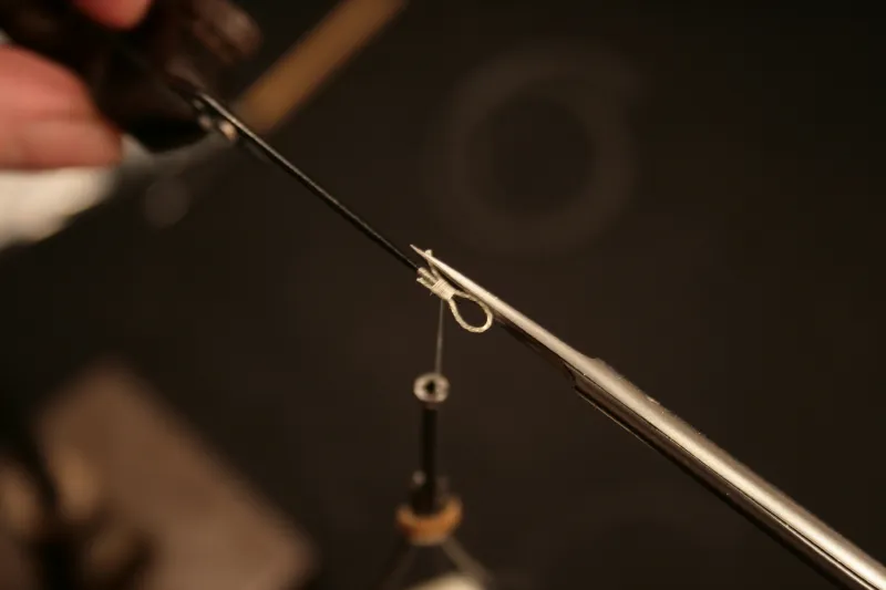 Shaping the ends of the gut is essential so we can make as smooth a foundation for the head area as possible. So you need to cut both ends in an angle so we can make close wraps over it.