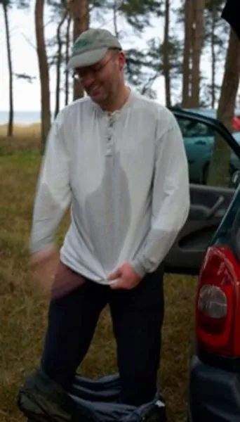 Yours truly in an uncomfortable situation - this is January, and not warm at all.