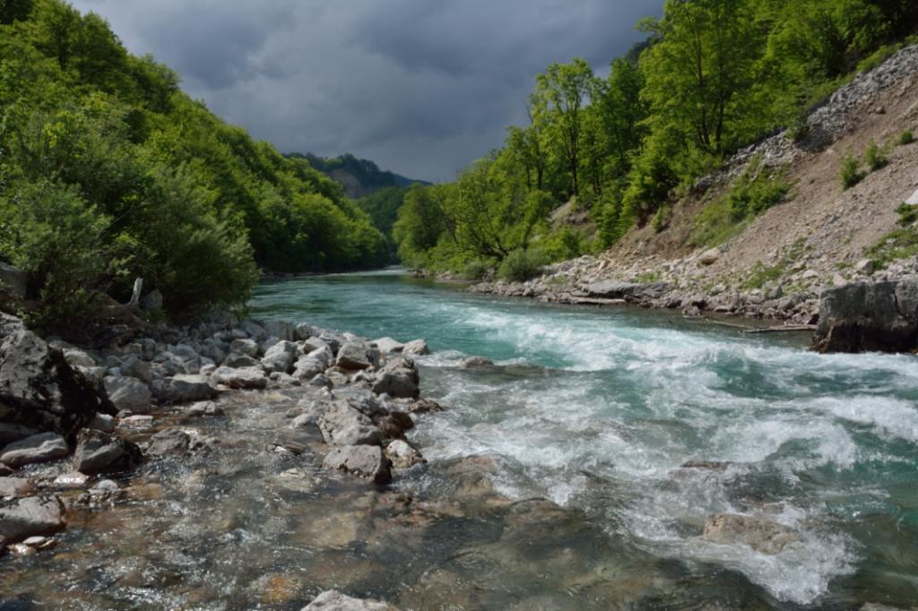 Fly fishing the beautiful river Tara in Montenegro in may we were surprised by a thunderstorm