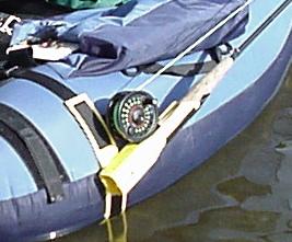 The Float-n-Tote rod holder straps on easily to the pontoon of your float tube.