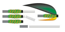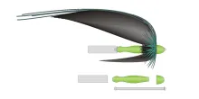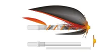 An interesting variation of the rear tube system is the Interchangeable Body Tube System introduced by ever inventive Jurij Shumakov. This system, which was discovered “by accident” because one of Shumakov's friends misunderstood the traditional rear tube tying method, is actually quite simple: tie a fly on the thin inner tube, and slip any type of rear tube you want to use over the rear part of the thin tube extending behind the wing and hackle of the fly, and press it up behind the materials.