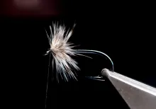 Unlike the wet fly hackle, it doesn’t curve or only curves very little, and it doesn’t yield or bend when pushed by water or air – or the fingers for that matter. It’s purpose is to be stiff and not move, and its tips will often rest on the surface of the water, not breaking the surface tension and in that way letting the fly float.