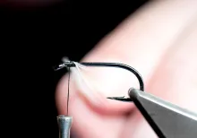 The problem might also be that you have feathers, which have the right color and thickness, but where the barbs are way too long for the hook size. In this case you can trim off the desired length of barbs and catch them in a thread loop to form a “barb brush” with the proper barb length.